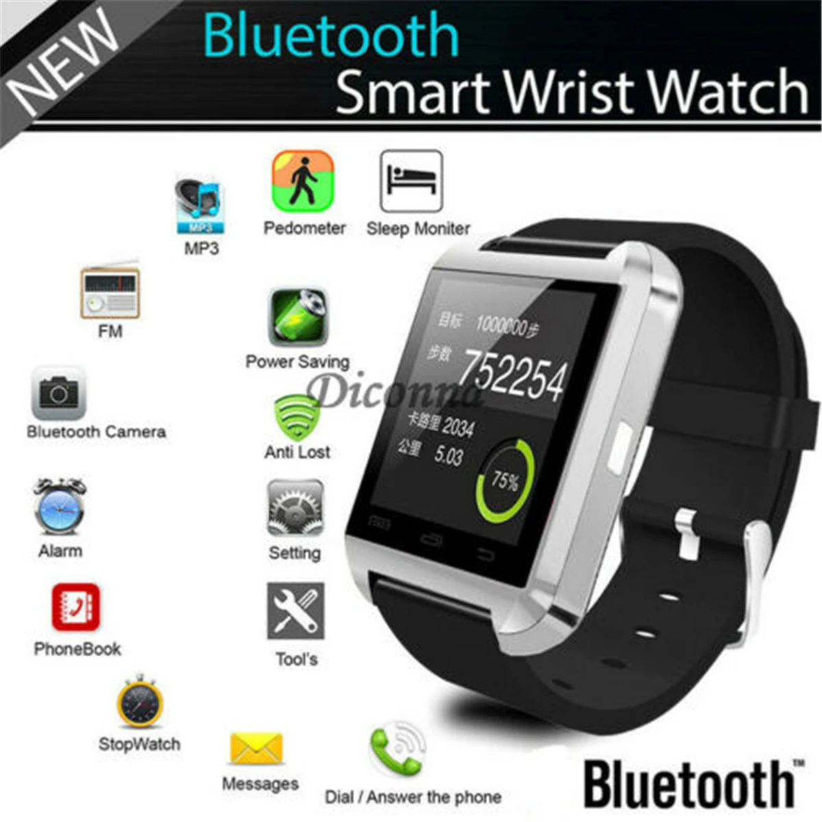 Addition Information of U8 Smart Watch Bluetooth Phone Mate For Android IOS iPhone Samsung LG HTC Unisex